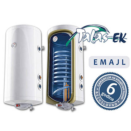 ELIT TALAS EK E80K je kombinovani vertikalni emajlirani bojler zapremine 80 litara sa levom orijentacijom priključaka, namenjen za pripremu sanitarne tople vode korišćenjem električne energije ili putem izmenjivača toplote povezanog na sistem centralnog grejanja ili solarne kolektore. Kazan bojlera izrađen je od čelika sa visokokvalitetnom staklokeramičkom zaštitom, dok posebno masivna magnezijumska anoda obezbeđuje dugotrajan rad i visoku otpornost na koroziju. Zahvaljujući ovakvoj konstrukciji, proizvođač obezbeđuje bezuslovnu garanciju na kazan u trajanju od 6 godina. Toplotna izolacija od poliuretana debljine 18,2 mm smanjuje gubitke toplote i doprinosi energetskoj efikasnosti bojlera. Izmenjivač toplote površine 0,21 m² omogućava efikasno zagrevanje vode preko sistema centralnog grejanja ili solarnih kolektora. Bojler je opremljen termostatom, sigurnosnim ventilom i prekidačem ON/OFF, čime je obezbeđena sigurna i pouzdana eksploatacija. Maksimalna radna temperatura iznosi 75 °C, dok maksimalni radni pritisak iznosi 0,6 MPa. ELIT TALAS EK E80K levi je idealno rešenje za instalacije gde je neophodna leva orijentacija priključaka uz potpunu fleksibilnost načina zagrevanja vode.