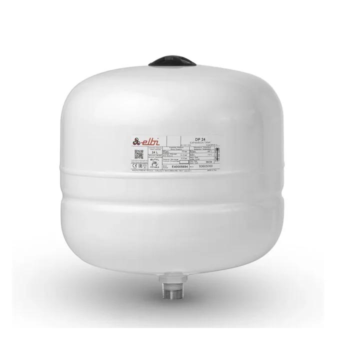 Ekspanziona posuda Elbi DP Solar zapremine 24 litra namenjena je za primenu u sanitarnim i solarnim sistemima, gde služi za prihvat i kompenzaciju zapreminskih promena vode nastalih usled temperaturnih promena. Može se koristiti kao ekspanzioni rezervoar u sistemima sanitarne tople vode, ali i kao rezervoar pod pritiskom u sistemima hladne sanitarne vode.