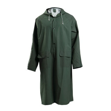 🧥 Kabanica od PVC-a i poliestera 🌧️ Potpuno vodootporna sa zaptivenim šavovima 🌬️ Ventilacija pod pazuhom i na leđima 🧢 Fiksna kapuljača sa učkama 📏 Dužina: 120 cm 💚 Boja: zelena 📐 Veličina: L 🏗️ Pogodna za građevinu, industriju i poljoprivredu