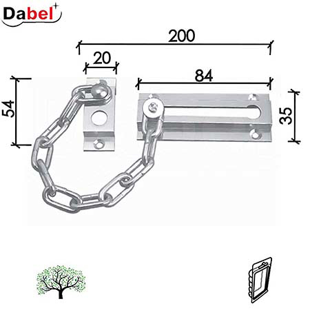 Lanac za vrata hromirani dimenzija 85×35,5 mm, model LA431, namenjen je za dodatno obezbeđenje vrata i kontrolisano otvaranje. Izrađen je od kvalitetnog mesinga sa hromiranom završnom obradom, što mu obezbeđuje dug vek trajanja, otpornost na habanje i estetski izgled. Lanac omogućava delimično otvaranje vrata uz zadržavanje sigurnosti, što je posebno pogodno za stambene i poslovne prostore. Namenjen je za ugradnju na drvena vrata i isporučuje se u pakovanju prilagođenom trgovačkom kačenju, idealnom za maloprodajnu izložbu. Zahvaljujući klasičnom dizajnu i hromiranoj boji, lako se uklapa u različite stilove enterijera.