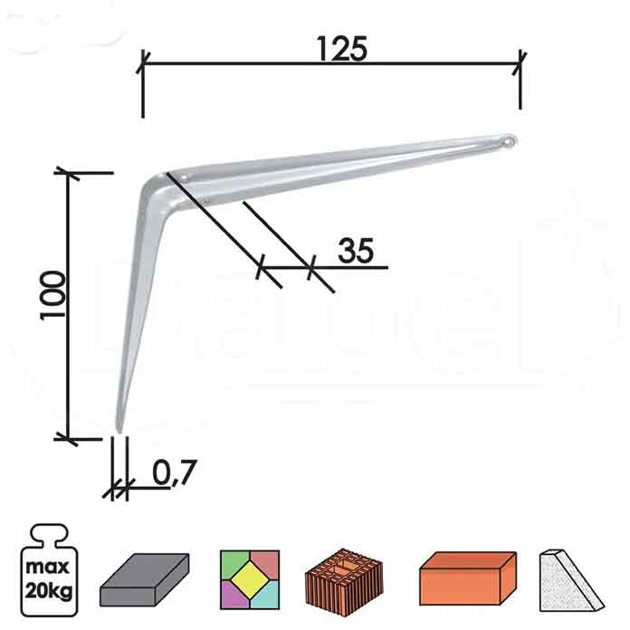 📐 Konzolni nosač police L oblika 📏 Dimenzija 125×150 mm 🧱 Materijal: čelik 🏗️ Stabilno i sigurno nošenje polica 🏠 Pogodan za beton, ciglu, blok i gips 🛒 Pakovanje za trgovačku prodaju