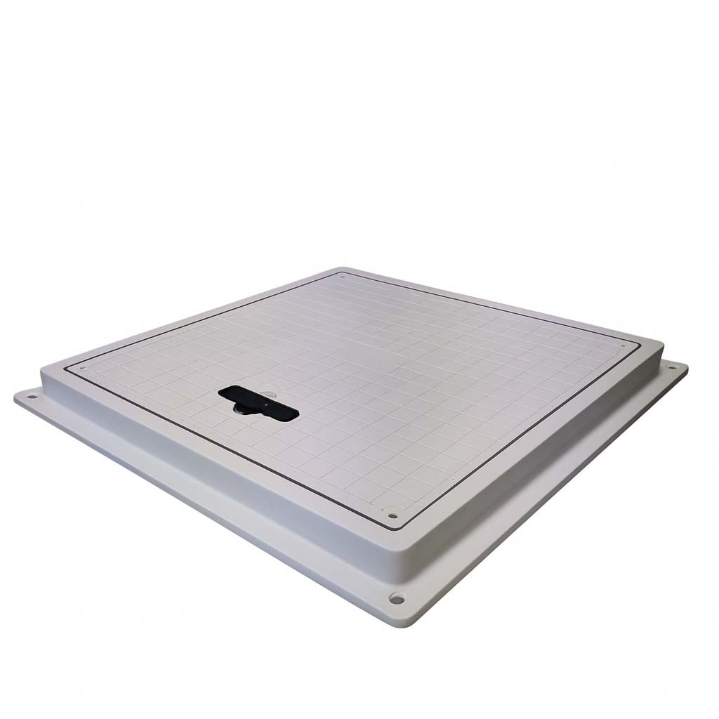 🛡️ PVC poklopac 550x550 mm bez rupica 🔧 Višenamenska primena u instalacijama 💧 Otporan na vlagu, hemikalije i spoljne uslove 🏗️ Pogodan za vodovod, kanalizaciju, dvorišta i bazene