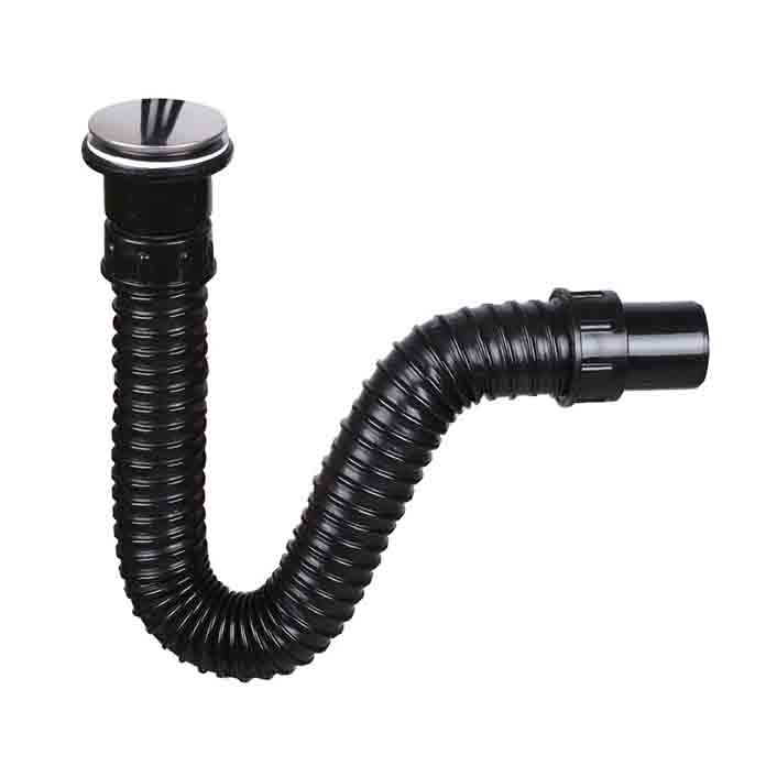 Sifon lavaboa fleksibilni Exclusive Black S-11429 dizajniran je za ugradnju u sve vrste lavaboa, pružajući prostoru moderan i elegantan izgled. Izrađen od visokokvalitetne savitljive PVC cevi prečnika 40 mm, unutrašnja površina je potpuno glatka radi optimalnog protoka vode, dok je spolja spiralno motana radi fleksibilnosti i lakšeg postavljanja.