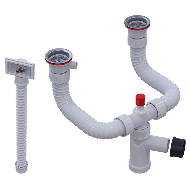 🧼 Sifon za jednodelnu sudoperu – KRUTI 1/1 F115 💧 Vodeni zaptivač visine 34 mm 🔗 Gibljivi odvodi (2x300 mm) – bez zadržavanja vode 🔁 Priključak za preliv i mašinu za sudove 🔒 Konusni spoj i zaptivka – sigurno zaptivanje 📏 Dimenzije: 500x200x90 mm ⚖️ Težina: 544 g 🧪 Materijali: AISI 304, PP, PVC 📄 Standard: SRPS EN 274 ⭕ Rešetka sifona Ø65 mm