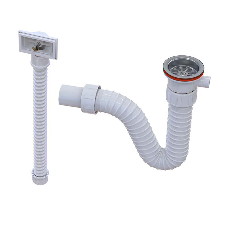 🧼 Sifon za dvodelnu sudoperu 🔁 Priključak za mašinu za sudove 🔒 Konusni spoj – sigurno zaptivanje 🧪 Zaptivke za nepropusnu vezu 🔗 Gibljiva creva: 500 mm i 300 mm ⭕ Rešetka sifona Ø65 mm 📏 Dimenzije: 790x190x80 mm ⚖️ Težina: 422 g 🧪 Materijali: AISI 304, PP, PVC 📄 Standard: SRPS EN 274