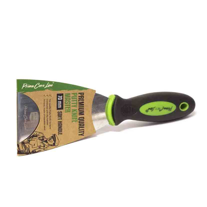 Špahtla Master Soft širine 70 mm izrađena je od visokokvalitetnog nerđajućeg čelika (inox) koji obezbeđuje otpornost na koroziju i habanje. Precizno obrađena ivica omogućava ravnomerno nanošenje i skidanje materijala poput kita, lepka, gipsa i mase za zaglađivanje. Zahvaljujući mekanoj gumenoj dršci ergonomskog oblika, špahtla pruža stabilan i udoban hvat, smanjujući zamor ruku pri dugotrajnoj upotrebi. Kombinacija čvrstoće i elastičnosti čini ovaj alat idealnim za profesionalne molere, gipsare i sve vrste završnih radova.