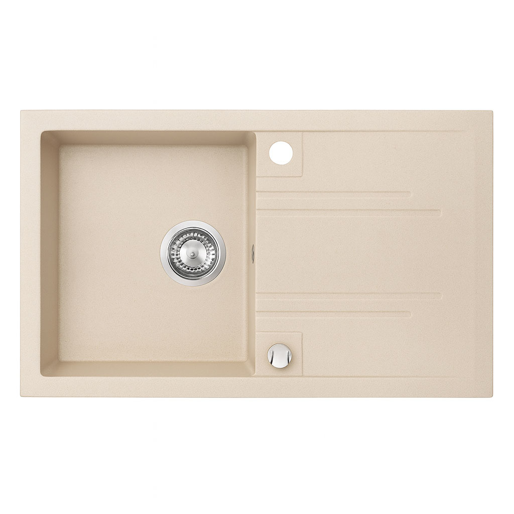 Granitna sudopera DRGM48/78SA u bež boji dimenzija 78 x 48 cm predstavlja moderan i funkcionalan izbor za svaku kuhinju. Izrađena je od granitnog kompozita visokog kvaliteta koji obezbeđuje otpornost na ogrebotine, visoke temperature i hemijska sredstva, što garantuje dug vek trajanja i lako održavanje. Sudopera dolazi u kompletu sa sifonom i automatskim odlivnikom (korpicom), a sifon poseduje priključak za mašinu za sudove ili veš mašinu. Pored toga, sudopera poseduje prelazni otvor (preliv) koji dodatno štiti od izlivanja vode. Model je ugradni (recessed) i reverzibilan, što znači da se može ugraditi tako da komora bude sa leve ili desne strane, u zavisnosti od potreba korisnika. Uz elegantan dizajn i praktične funkcije, sudopera kombinuje estetiku, trajnost i funkcionalnost. Garancija: 15 godina na sudoperu i 2 godine na sifon i odlivnik.