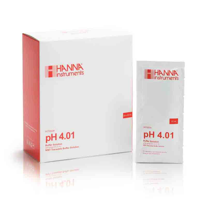 Tečnost za kalibraciju – pufer pH 4,01 kesica 20 ml 📦 Kesica od 20 ml pH 4,01 kalibracionog pufera 🧪 Tačnost ±0,01 pH na 25°C 🛡️ Zaštićeno od UV svetlosti 🗓️ Rok trajanja 5 godina (neotvoreno) 📏 Pakovanje: 25 kesica